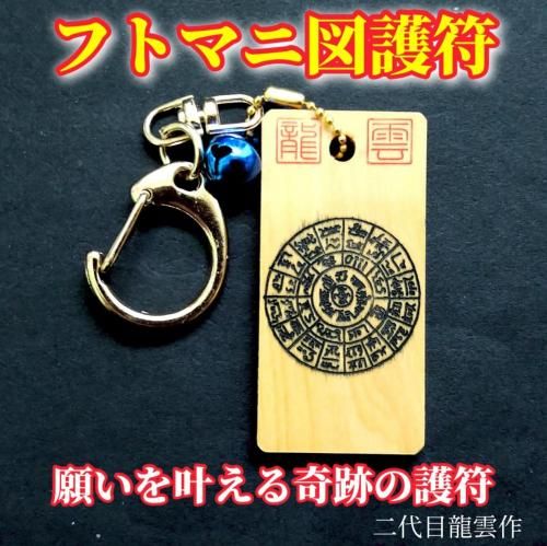 フトマニ図護符 キーホルダー 黒 (木札・中)